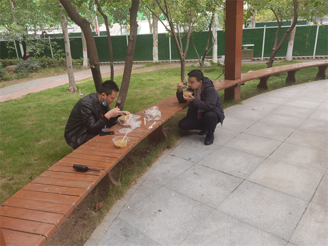 學(xué)工老師們?cè)谖缧輹r(shí)間匆忙用餐