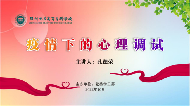 本次講座,有助于全校師生打好疫情防控戰(zhàn)提供最大的心理支持和精神保障,是對(duì)廣大師生心理關(guān)心關(guān)愛(ài)的具體體現(xiàn)。通過(guò)講座,進(jìn)一步提升了學(xué)校心理健康教育“學(xué)校——學(xué)院——班級(jí)——宿舍”四級(jí)網(wǎng)絡(luò)工作隊(duì)伍的專業(yè)素質(zhì)和能力,增強(qiáng)了各級(jí)隊(duì)伍心理問(wèn)題的識(shí)別和應(yīng)對(duì)能力,營(yíng)造了全員育人的工作氛圍,為維護(hù)學(xué)生的健康成長(zhǎng)和校園的安全穩(wěn)定打下了堅(jiān)實(shí)基礎(chǔ)。