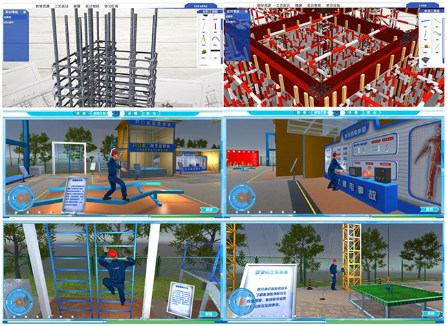 “四元融通”聯(lián)合開發(fā)理虛實(shí)一體化教學(xué)資源,以虛助實(shí),突破難點(diǎn)。利用BIM技術(shù)虛實(shí)結(jié)合的特點(diǎn),聯(lián)合河南建協(xié)、中建七局、中鐵二十局、河南天工、廊坊中科、廣州中望、北京廣聯(lián)達(dá)、西安三好等行業(yè)、企業(yè)、證書、競(jìng)賽的相關(guān)方,開發(fā)崗課賽證“四元融通”特色的虛擬仿真教學(xué)資源。對(duì)接BIM基礎(chǔ)應(yīng)用、專項(xiàng)應(yīng)用、綜合管理等崗位群,基于真實(shí)工程項(xiàng)目、典型安全事故、復(fù)雜工序,開發(fā)《基礎(chǔ)工程施工》等理虛實(shí)一體的模塊化課程18門、方艙醫(yī)院等工程項(xiàng)目仿真33個(gè)、洞口墜落等安全事故仿真63個(gè)、異形屋面等復(fù)雜工序仿真782個(gè),融入免共振微擾動(dòng)沉樁等“建筑五新”85項(xiàng),有效解決建筑實(shí)訓(xùn)高風(fēng)險(xiǎn)、難再現(xiàn)、高消耗等痛點(diǎn)。同時(shí),開發(fā)楊靖宇革命紀(jì)念館等紅色教育仿真資源34個(gè)、時(shí)光寶盒國(guó)寶文物等素質(zhì)教育仿真資源15個(gè)、云上鄒莊美麗鄉(xiāng)村等課程思政仿真資源45個(gè),有效解決公共基礎(chǔ)課教學(xué)的應(yīng)用場(chǎng)景難實(shí)施、難觀摩、高投入等痛點(diǎn)。應(yīng)用BIM技術(shù)以虛助實(shí),有景、有趣、有效、有用,突破理實(shí)一體化的難點(diǎn),形成了理虛實(shí)一體的模塊化、系統(tǒng)化虛擬仿真實(shí)訓(xùn)體系。
