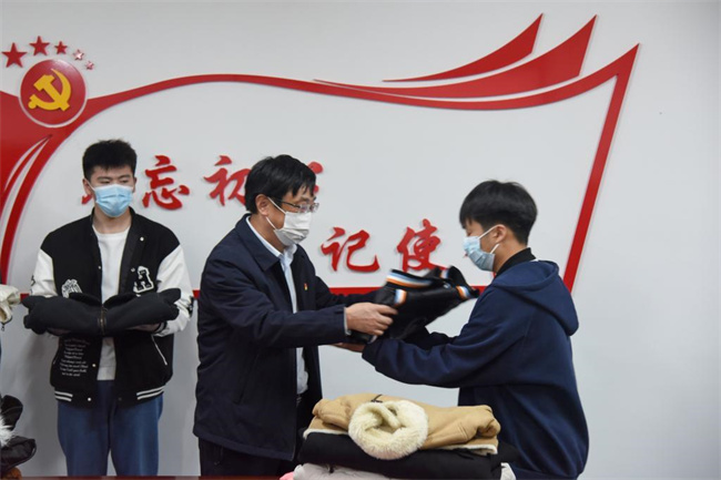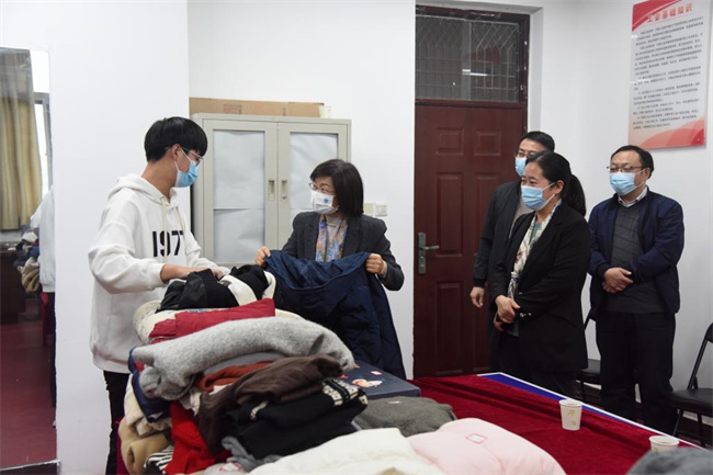校黨委書記李桂貞為學(xué)生捐贈(zèng)衣物