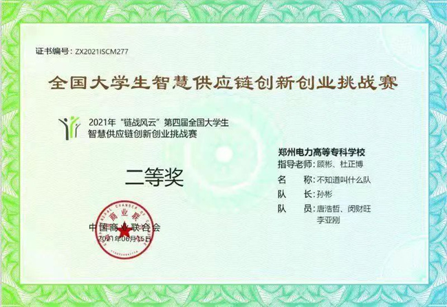 第四屆全國大學生智慧供應鏈創(chuàng)新創(chuàng)業(yè)挑戰(zhàn)賽(團體賽)二等獎(排名第一)