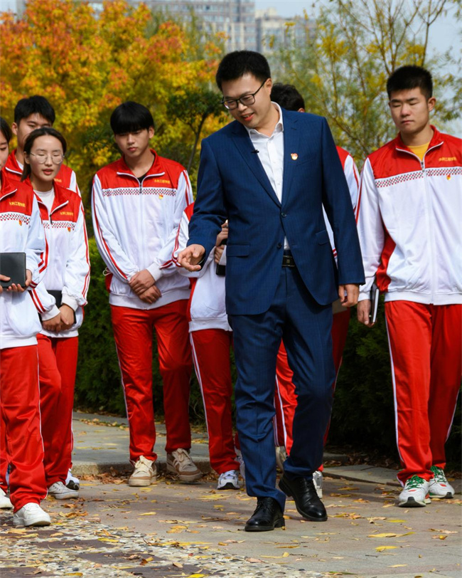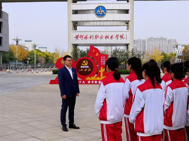 在室外校史館,他聲情并茂介紹了老校長王化云畢生致力于治理黃河,探索提出“寬河固堤”“除害興利,綜合利用”“蓄水?dāng)r沙”“上攔下排”等治河主張,為人民治黃事業(yè)作出重大貢獻(xiàn)、培養(yǎng)大批建設(shè)人才的輝煌成就。他講到,學(xué)校培養(yǎng)的賀樹明、謝會(huì)貴等一大批治水英才,長期扎根黃河一線,為大河安瀾譜寫了精彩華章,也為同學(xué)們樹立了榜樣。胡昊叮囑同學(xué)們,要肩負(fù)使命,苦練本領(lǐng),立志成為護(hù)佑黃河安瀾的能工巧匠、大國工匠。(黃河水利職業(yè)技術(shù)學(xué)院供稿)