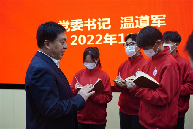 學(xué)校黨委書(shū)記溫道軍以《學(xué)思踐悟凝心鑄魂 踔厲奮發(fā)勇毅前行》為題宣講黨的二十大精神,為師生上專(zhuān)題思政課