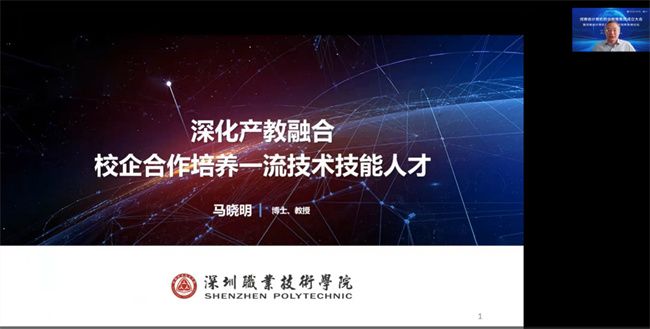 在人才培養(yǎng)高峰論壇階段,深圳職業(yè)技術(shù)學(xué)院副校長馬曉明教授以《深化產(chǎn)教融合校企合作培養(yǎng)一流技術(shù)技能人才》為題作專題報告。他結(jié)合實際從職業(yè)教育政策背景、對接產(chǎn)業(yè)設(shè)置專業(yè)、培養(yǎng)一流技術(shù)技能人才三個方面,介紹了深圳職業(yè)技術(shù)學(xué)院在教育教學(xué)實踐中的先進(jìn)經(jīng)驗。他指出,要做好產(chǎn)教融合、校企合作,“內(nèi)在需求”是前提,“畢業(yè)生質(zhì)量”是核心,“文化相融”是基礎(chǔ),“課程體系”是內(nèi)容,“強強合作”是保證。報告內(nèi)容詳實、精彩紛呈,具有很強的針對性、指導(dǎo)性和實踐性。