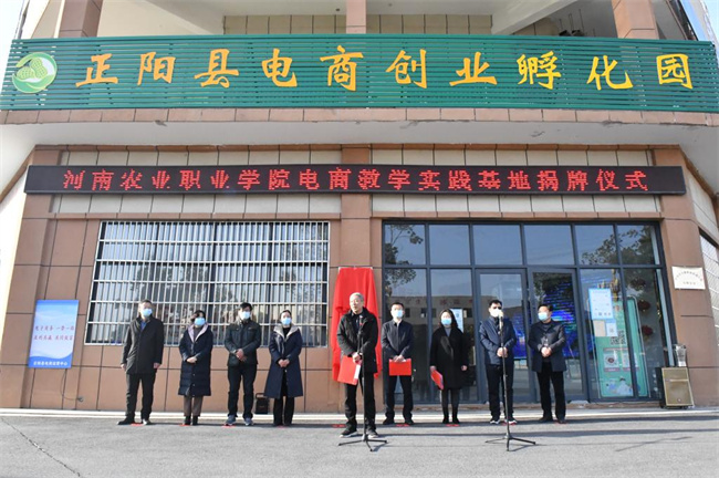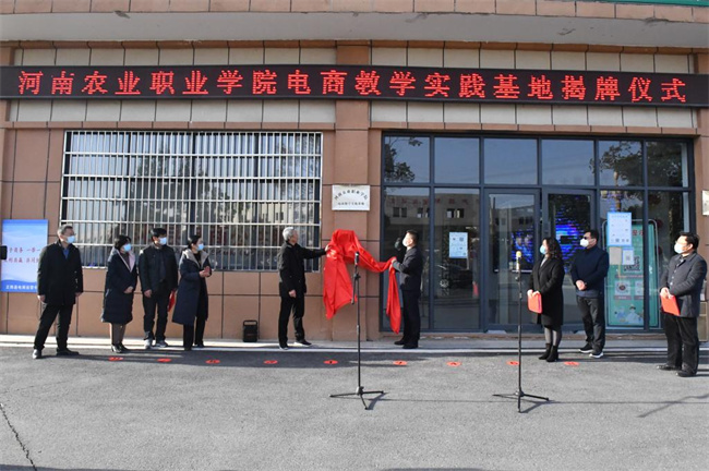 陳建軍、張鵬共同為河南農業(yè)職業(yè)學院電商教學實踐基地揭牌。