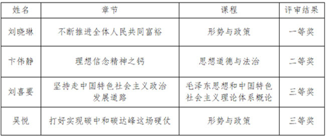 根據(jù)中共河南省委教育工委辦公室、河南省教育廳辦公室《關(guān)于開展全省高校思想政治理論課示范“金課”評選活動的通知(教思政函〔2022〕255號)要求,今年6月份,河南交通職業(yè)技術(shù)學(xué)院共選派4名教師參賽。經(jīng)過高校申報、資格審查、專家評審、綜合評議等嚴(yán)格的評選環(huán)節(jié),河南交通職業(yè)技術(shù)學(xué)院教師斬獲佳績。