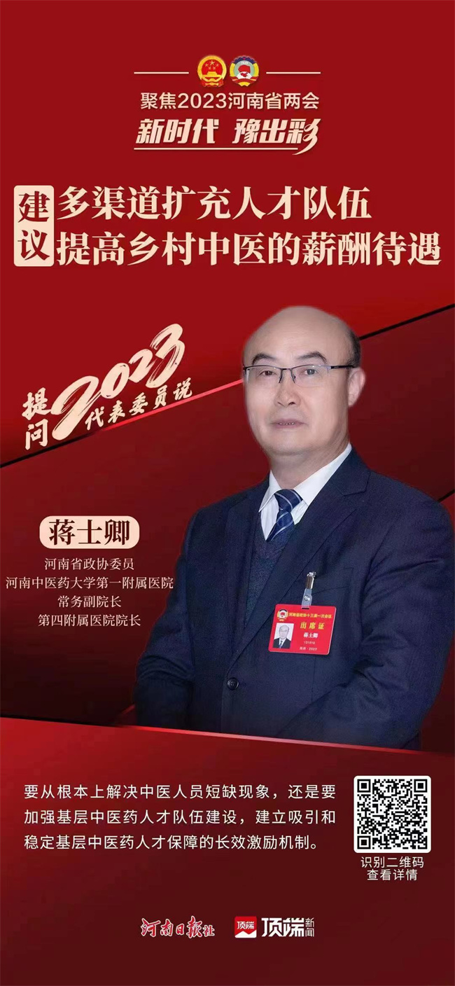 今年是省政協(xié)委、中國(guó)農(nóng)工民主黨省委常委、河南中醫(yī)藥大學(xué)第一附屬醫(yī)院常務(wù)副院長(zhǎng)、第四附屬醫(yī)院院長(zhǎng)蔣士卿履職的第六個(gè)年頭,10多年來(lái),蔣士卿將目光聚焦在河南省基層中醫(yī)館建設(shè)方面。他提出,建議加強(qiáng)基層中醫(yī)館人才培養(yǎng),壯大基層中醫(yī)藥人才隊(duì)伍;具有抗病毒作用的中藥材需求量大,建議對(duì)這類(lèi)中藥材集中帶量采購(gòu);建議支持三甲中醫(yī)醫(yī)院制定抗疫中藥系列院內(nèi)制劑并納入醫(yī)保;建議開(kāi)通中醫(yī)藥對(duì)外交流合作綠色通道,加大優(yōu)質(zhì)中藥材基地建設(shè),完善市場(chǎng)流通體系,建設(shè)現(xiàn)代化中藥材物流交易中心。