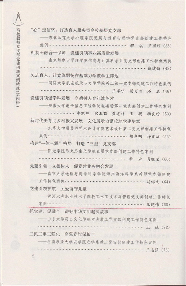 該校教工水工技術(shù)與管理黨支部以“五好黨支部”為標(biāo)準(zhǔn),深化體制機(jī)制建設(shè),推進(jìn)黨建工作與業(yè)務(wù)工作深度融合,傾心構(gòu)建了“四個(gè)二、五個(gè)一”“2+1+X”年度、月度黨建工作法,精心制定了《支部黨員學(xué)習(xí)制度》《支部黨員評(píng)先評(píng)優(yōu)管理制度》《支部活動(dòng)制度》《支部書(shū)柜圖書(shū)借閱制度》等四項(xiàng)工作制度,呈現(xiàn)出政治理論學(xué)習(xí)深入系統(tǒng)、支部特色活動(dòng)生動(dòng)持久、新聞宣傳材料及時(shí)鮮活等特色亮點(diǎn)。該支部連續(xù)四年獲評(píng)學(xué)校先進(jìn)基層黨組織,是全國(guó)高校“雙帶頭人”教師黨支部書(shū)記工作室培育創(chuàng)建單位。本次收入《案例精選》的“關(guān)愛(ài)留守兒童”特色活動(dòng),開(kāi)始于2017年9月,支部在通許縣大崗李鄉(xiāng)小崗郭村小學(xué)建立了“留守兒童愛(ài)心家園”,目前已連續(xù)6年開(kāi)展了13次愛(ài)心幫扶;顒(dòng)為孩子們送去了學(xué)習(xí)、生活用品,傳遞了黨的關(guān)懷、愛(ài)的溫暖、社會(huì)的正能量,用黨的偉大精神引領(lǐng)青少年奮進(jìn)新征程。