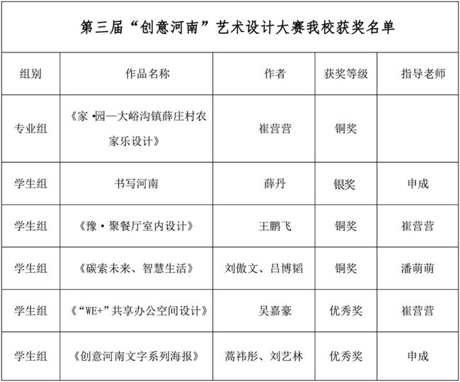 鄭州升達經貿管理學院師生在第三屆“創(chuàng)意河南” 藝術設計大賽中喜獲佳績