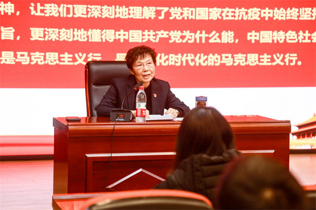 王霄鸝講到,在這場同嚴重疫情的殊死較量中,中國人民和中華民族鑄就了“生命至上、舉國同心、舍生忘死、尊重科學、命運與共”的偉大抗疫精神?挂叨窢,不僅彰顯了中國共產(chǎn)黨具有無比堅強的領(lǐng)導力,是風雨來襲時中國人民最可靠的主心骨,也證明了我國社會主義制度具有非凡的組織動員能力、統(tǒng)籌協(xié)調(diào)能力、貫徹執(zhí)行能力,能夠充分發(fā)揮集中力量辦大事、辦難事、辦急事的獨特優(yōu)勢,更體現(xiàn)了中國共產(chǎn)黨天下為公、命運與共的博大胸襟。