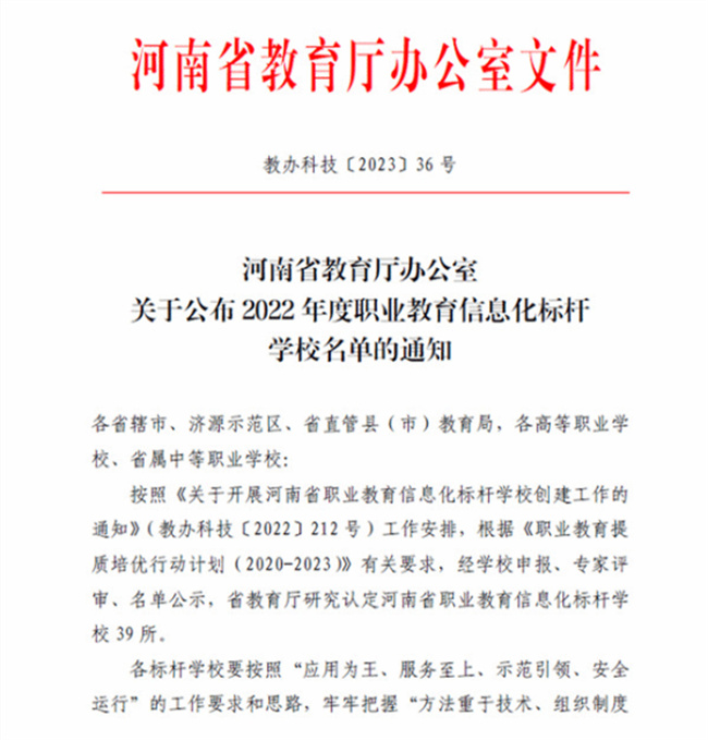 鄭州電力高等?茖W(xué)校榮獲“河南省職業(yè)教育信息化標(biāo)桿學(xué)!狈Q號