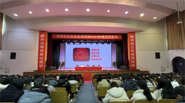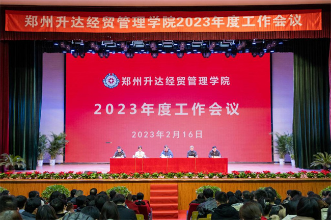 伴隨著雄壯的國(guó)歌聲,大會(huì)拉開了序幕。張欣作題為《邁向新征程 再鑄新輝煌 以優(yōu)異成績(jī)向建校30周年獻(xiàn)禮》工作報(bào)告。她首先代表學(xué)校向寒假堅(jiān)守在工作崗位的各位同仁表示衷心的感謝和崇高的敬意!向新入職的同仁表示熱烈的歡迎。報(bào)告回顧了剛剛過(guò)去的2022年,這極不平凡的一年,全體升達(dá)人齊心協(xié)力、迎難而上,扛過(guò)了疫情防控多輪阻擊戰(zhàn)和遭遇戰(zhàn),取得了學(xué)生培養(yǎng)、教學(xué)改革、專業(yè)建設(shè)和教學(xué)運(yùn)行的勝利,成績(jī)顯著、亮點(diǎn)紛呈, 學(xué)校各項(xiàng)事業(yè)發(fā)展保持了平穩(wěn)態(tài)勢(shì)。報(bào)告總結(jié)了2022年度的主要工作:一、黨建科學(xué)化水平持續(xù)提升;二、學(xué)生發(fā)展態(tài)勢(shì)穩(wěn)步向好;三、教師隊(duì)伍素質(zhì)明顯提高;四、教學(xué)改革不斷深化;五、科研服務(wù)社會(huì)能力持續(xù)增強(qiáng);六、疫情防控水平顯著提高;七、綜合保障能力日益增強(qiáng)。同時(shí),報(bào)告提出2023年度的工作思路,一、深入落實(shí)黨的二十大精神;二、堅(jiān)持和加強(qiáng)黨的全面領(lǐng)導(dǎo);三、完善審核評(píng)估準(zhǔn)備工作;四、全面提高本科教育教學(xué)質(zhì)量;五、推進(jìn)學(xué)科建設(shè)和申碩工作;六、全面深化人才強(qiáng)校戰(zhàn)略;七、全面提升產(chǎn)教融合水平;八、加快登封校區(qū)建設(shè)進(jìn)度;九、辦好30周年校慶活動(dòng);十、做好校園安全穩(wěn)定工作。她希望大家,新的一年,要團(tuán)結(jié)依靠全體黨員干部和師生員工,萬(wàn)眾一心、砥礪前行,靶向發(fā)力、精準(zhǔn)施策,腳踏實(shí)地、埋頭苦干,全力推動(dòng)學(xué)校事業(yè)實(shí)現(xiàn)更好更快發(fā)展。鼓足干勁再出發(fā),以新氣象、新作為、新成績(jī)向建校30周年獻(xiàn)禮。