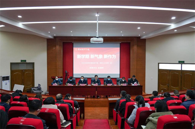 趙榴明簡要回顧了過去一年學(xué)校統(tǒng)籌疫情防控和事業(yè)發(fā)展各項工作攻堅克難、砥礪奮進(jìn)、極不平凡的發(fā)展歷程,并從三個方面就如何在新學(xué)期展現(xiàn)新氣象創(chuàng)造新作為提出具體要求。一是要堅持科學(xué)的認(rèn)識論,正確把握新學(xué)期的新形勢,對標(biāo)新學(xué)期黨政工作要點,立足新定位,錨定新目標(biāo),鍛造新能力,追求新境界,不斷實現(xiàn)學(xué)校事業(yè)發(fā)展的新跨越。二是要堅持問題導(dǎo)向,貼近學(xué)生,貼近管理服務(wù)對象,提振信心,凝聚人心,開展好春季學(xué)期系列教育引導(dǎo)活動,以實際行動衷心擁護(hù)“兩個確立”、忠誠踐行“兩個維護(hù)”,讓青春在全面建設(shè)社會主義現(xiàn)代化國家的火熱實踐中綻放絢麗之花。三是要堅持科學(xué)的方法論,在新學(xué)期新形勢下展現(xiàn)新氣象新作為,以釘釘子精神持續(xù)抓好各項工作任務(wù)落細(xì)落實落地,繼承和發(fā)揚艱苦奮斗、自強不息的優(yōu)良辦學(xué)傳統(tǒng),賡續(xù)奮斗精神,勇?lián)?zé)任使命,聚焦立德樹人根本任務(wù),在實干奉獻(xiàn)中創(chuàng)造非凡業(yè)績,在接續(xù)奮斗中書寫學(xué)校高質(zhì)量發(fā)展新篇章。