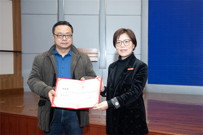 張欣為蒞校專家頒發(fā)客座教授聘書。