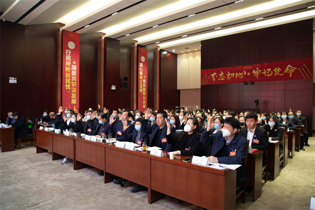 參會(huì)代表舉手表決各項(xiàng)報(bào)告