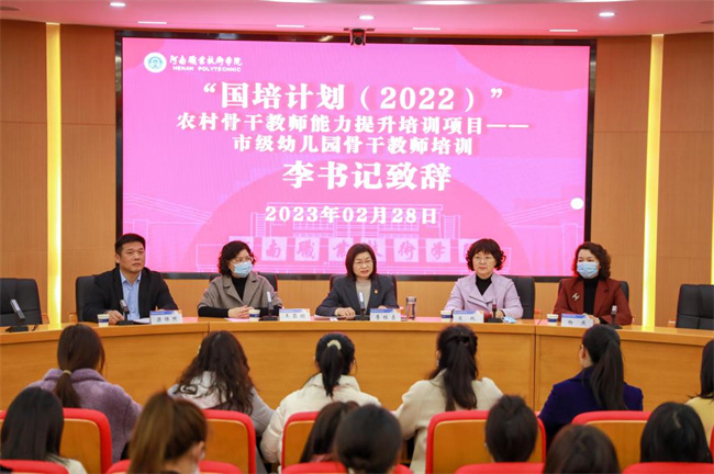 中新河南網(wǎng)3月2日電(黃菲) 2月28日上午,由河南職業(yè)技術(shù)學(xué)院承辦的省“國培計劃(2022)”市級幼兒園骨干教師能力提升項目培訓(xùn)班在行政樓239開班。黨委書記李桂貞致辭并作專題講座。音樂學(xué)院、繼續(xù)教育與培訓(xùn)中心相關(guān)負(fù)責(zé)人及鄭州市、信陽市100余名骨干教師參加儀式。開班儀式由副校長肖瓏主持。