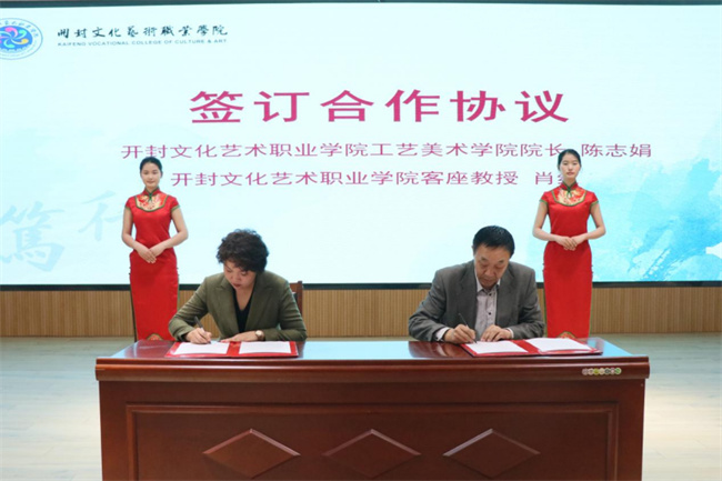 隨后,工藝美術學院院長陳志娟代表學校與肖紅簽訂合作協議,沈潔霞為肖紅教授頒發(fā)了聘書,楊克俊、劉震、沈潔霞、薛兆武、肖紅等共同上臺為肖紅大師工作室揭牌。