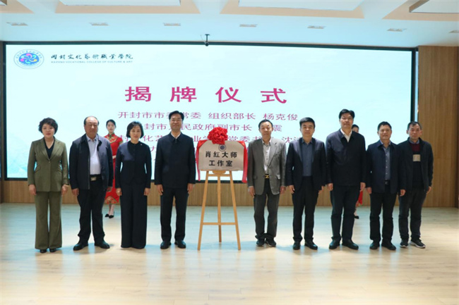 肖紅在致辭中表示,工作室的工作核心就是服務開封、服務社會、助力教改,提高職業(yè)教育的社會實踐度,增加開封文化藝術職業(yè)學院藝術設計類學科的社會知名度、美譽度,從而促進學校學科建設,為學科發(fā)展而盡心盡力,創(chuàng)造新的輝煌。