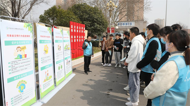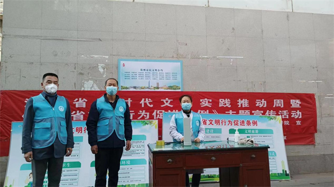 在學(xué)校家屬區(qū),行政黨總支黨員通過講解《河南省文明行為促進(jìn)條例》展板,引導(dǎo)群眾養(yǎng)成文明習(xí)慣,樹立文明風(fēng)尚。