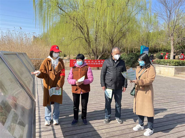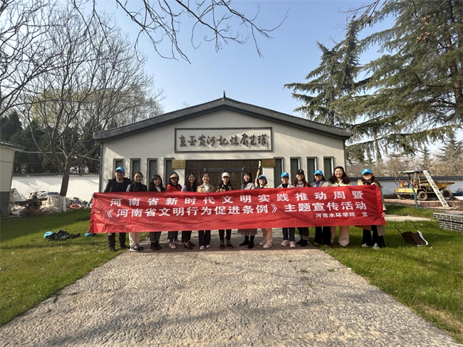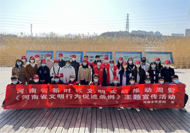 在學(xué)校水文化教育實踐基地——鄭州市賈魯河,環(huán)境工程系學(xué)生黨支部組織入黨積極分子和學(xué)生干部開展文明實踐活動,向過往市民講解、發(fā)放《河南省文明行為促進(jìn)條例》宣傳頁,并開展環(huán)保志愿服務(wù)活動。