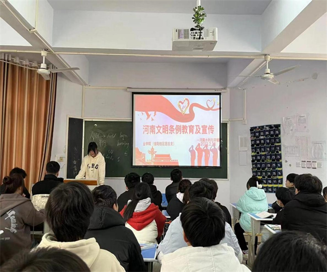 各系(校區(qū))以團(tuán)課形式,組織學(xué)生觀看《河南省文明行為促進(jìn)條例》專題視頻,并通過擺放主題展板等形式,營造了學(xué)習(xí)《條例》的良好氛圍。學(xué)生們紛紛表示,要自覺遵守《條例》規(guī)定,深入踐行社會主義核心價值觀,不斷提升個人文明素養(yǎng),爭做文明行為的踐行者、文明風(fēng)尚的傳播者,展現(xiàn)新時代大學(xué)生的文明風(fēng)采。