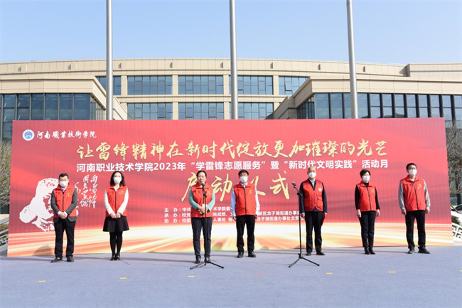 中新河南網(wǎng)3月7日電(胡艷王宜賓) 惠風(fēng)和暢,陽(yáng)光明媚。今年3月5日,是第60個(gè)“學(xué)雷鋒紀(jì)念日”。當(dāng)天上午,河南職院隆重舉行2023年“學(xué)雷鋒志愿服務(wù)”暨“新時(shí)代文明實(shí)踐”活動(dòng)月啟動(dòng)儀式。校長(zhǎng)梅樂堂出席儀式并作題為《讓雷鋒精神在新時(shí)代綻放更加璀璨的光芒》的“開學(xué)第一課”講話。龍子湖辦事處黨工委副書記、主任李鄭懿出席儀式并致辭。儀式由校黨委副書記、紀(jì)委書記田華主持。