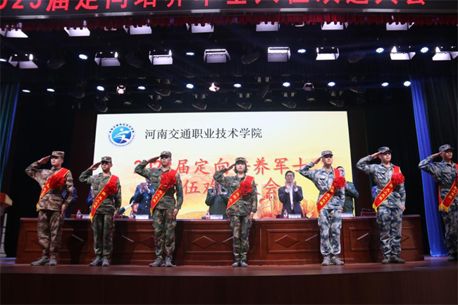 中新河南網(wǎng)3月16日電(趙攀科) 近日,河南交通職業(yè)技術(shù)學(xué)院在航海路校區(qū)舉行儀式,歡送2023屆定向培養(yǎng)軍士光榮入伍。河南省征兵辦公室主任、省軍區(qū)動(dòng)員局大校局長(zhǎng)姜巍、河南省教育廳二級(jí)巡視員秦劍臣、鄭州警備區(qū)動(dòng)員處參謀陳杰、鄭州二七區(qū)人武部部長(zhǎng)梁江濤、校黨委書記劉志偉出席大會(huì)。校長(zhǎng)焦宏濤主持大會(huì)。