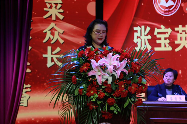 肖秀蓮代表周口市戲劇家協(xié)會對“張寶英大師工作室”落戶周口、落戶周口職業(yè)技術(shù)學(xué)院表示熱烈祝賀。她指出,豫劇藝術(shù)是河南的名片,體現(xiàn)了河南的文化自信。崔派藝術(shù)是戲曲的精粹,豫劇大師張寶英老師在全面繼承崔派藝術(shù)的基礎(chǔ)上與時俱進(jìn),博采眾長,形成了新崔派藝術(shù)風(fēng)格。戲曲藝術(shù)更需要薪火相傳,學(xué)校適時成立張寶英大師工作室必將極大推動新時代周口戲曲事業(yè)繁榮發(fā)展。