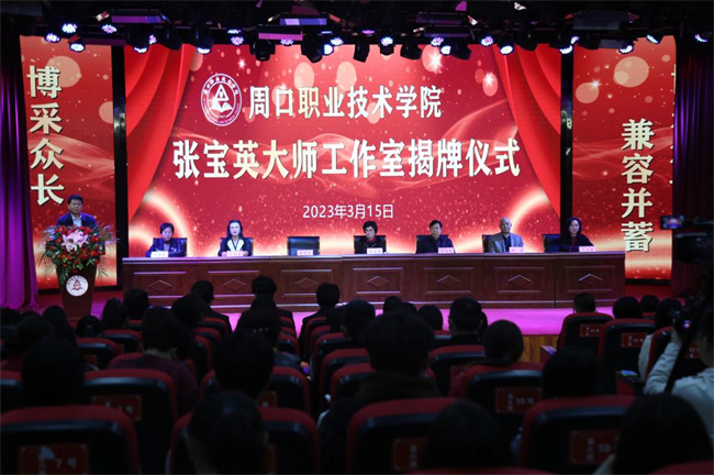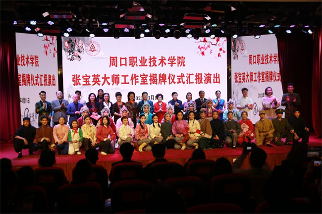 張寶英大師發(fā)表熱情洋溢的講話。她表示,周口職業(yè)技術(shù)學(xué)院具有光榮的革命歷史傳統(tǒng),是國家級高技能人才培訓(xùn)基地,全省示范性高職院校,全省優(yōu)質(zhì)高等職業(yè)院校。能夠在這里創(chuàng)辦豫劇大師工作室,傳承豫劇崔派藝術(shù),首先感謝各位領(lǐng)導(dǎo)和老師為學(xué)生學(xué)習(xí)傳承崔派藝術(shù)搭建了良好平臺。接下來,必將竭盡全力幫助指導(dǎo)工作室事務(wù)的順利開展,在傳承發(fā)揚民族優(yōu)秀傳統(tǒng)文化上貢獻(xiàn)自己的力量。同時,將分期分批安排優(yōu)秀弟子來校與師生共同學(xué)習(xí)交流傳承崔派藝術(shù),豐富教學(xué)內(nèi)容,為傳承發(fā)展祖國戲曲藝術(shù)做出應(yīng)有貢獻(xiàn)。