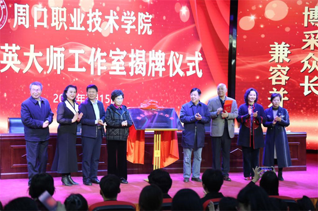 校長李清臣分別為豫劇表演藝術(shù)家張寶英、豫劇崔派藝術(shù)理論家楊奇頒發(fā)特聘教授聘書。黨委書記劉士欣、張寶英大師共同為“大師工作室”揭牌。