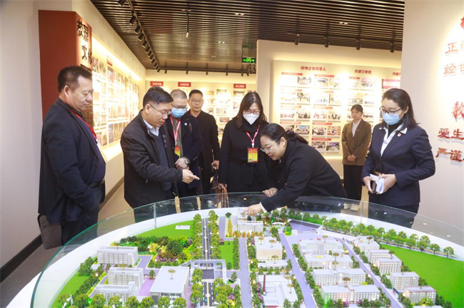 聽課結(jié)束后,專家組一行前往思政演練中心,考察該院思政課實踐教學(xué)建設(shè)情況,通過VR一體機沉浸式交互體驗紅色思政教學(xué)。隨后,專家組前往該院校內(nèi)實踐基地校史館參觀,在教務(wù)處副處長周艷麗的講解下,全方位了解了該院55年來的發(fā)展歷程、辦學(xué)成就、發(fā)展規(guī)劃和學(xué)生實踐成果。