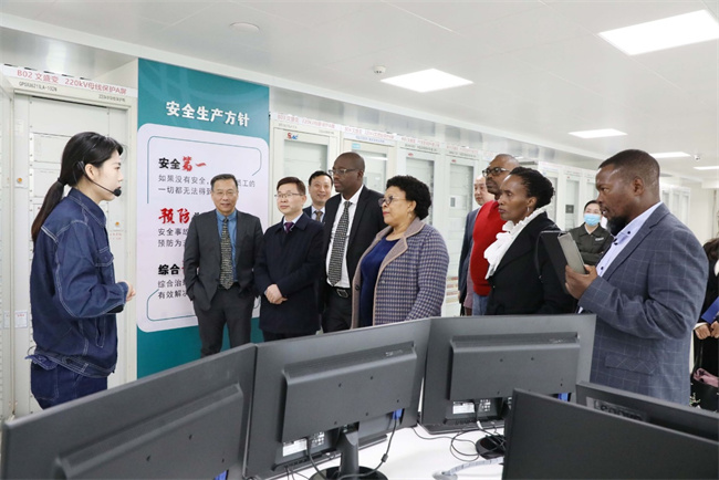 代表團(tuán)在楊建華校長和楊小琨副校長的陪同下,先后參觀了智能變電站二次系統(tǒng)實(shí)訓(xùn)室、配網(wǎng)帶電作業(yè)基地,隨后對(duì)220kV智能變電站實(shí)訓(xùn)基地、新能源產(chǎn)教融合實(shí)訓(xùn)基地、國家級(jí)數(shù)控生產(chǎn)性實(shí)訓(xùn)基地以及配電自動(dòng)化實(shí)訓(xùn)室、光伏電站運(yùn)維實(shí)訓(xùn)室、智慧能效實(shí)訓(xùn)室等5個(gè)實(shí)訓(xùn)室進(jìn)行了走訪。在充分了解了鄭州電力高等?茖W(xué)校“以電為主”的辦學(xué)方向和辦學(xué)特色后,圍繞“深化中-南非雙方職業(yè)教育合作”進(jìn)行了專題座談會(huì),學(xué)校教務(wù)處、國際教育部以及相關(guān)學(xué)院負(fù)責(zé)同志參加了座談會(huì),會(huì)議由楊小琨副校長主持。