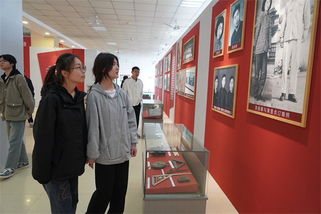 與會(huì)領(lǐng)導(dǎo)、嘉賓與學(xué)校師生一同參觀展覽