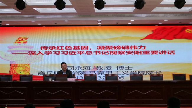 馬克思主義學(xué)院黨委副書記張文濤宣讀《商丘師范學(xué)院首屆青馬紅色文化節(jié)》活動(dòng)方案。教師代表張楊、學(xué)生代表劉子萌分別發(fā)言。