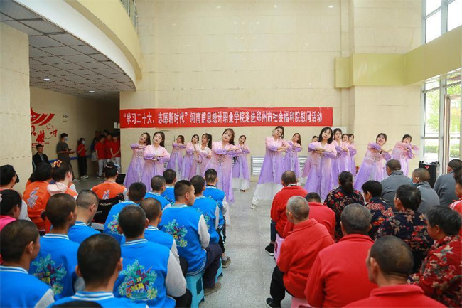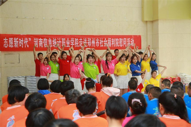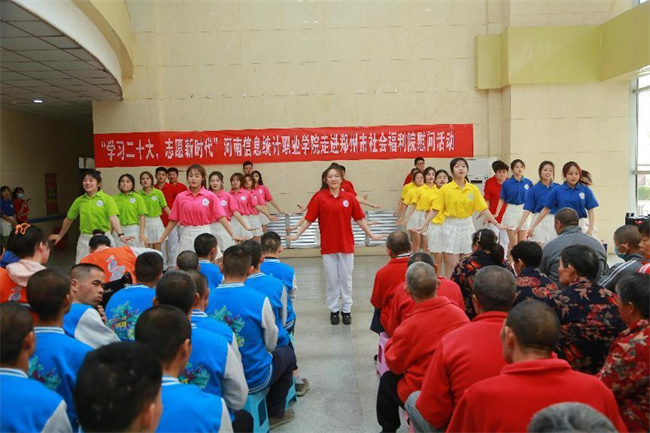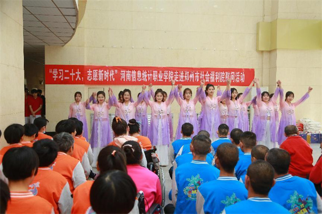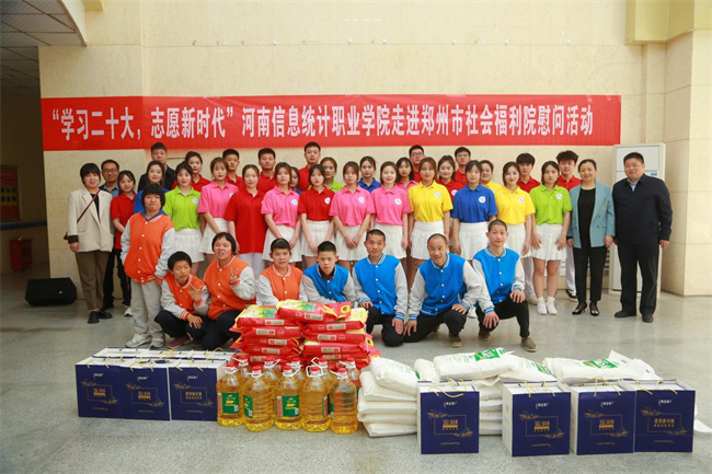 中新河南網(wǎng)4月13日電 4月11日,河南信息統(tǒng)計(jì)職業(yè)學(xué)院志愿服務(wù)隊(duì)30余人,前往鄭州市社會(huì)福利院舉行“學(xué)習(xí)二十大 志愿新時(shí)代”——河南信息統(tǒng)計(jì)職業(yè)學(xué)院走進(jìn)鄭州市社會(huì)福利院慰問活動(dòng),看望、慰問福利院的孤寡老人和兒童,進(jìn)行慰問演出,并送去大米、食用油、面粉、牛奶等慰問品。學(xué)校宣傳統(tǒng)戰(zhàn)部、校團(tuán)委負(fù)責(zé)人和鄭州市社會(huì)福利院黨總支書記張喜成、院長張春萍出席活動(dòng)。