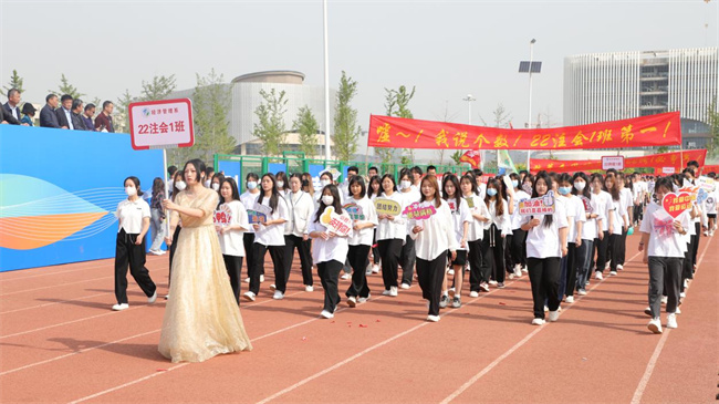 李廣慧致開(kāi)幕辭,對(duì)運(yùn)動(dòng)會(huì)的召開(kāi)表示熱烈的祝賀,向運(yùn)動(dòng)會(huì)所有工作人員、全體運(yùn)動(dòng)員和全體教職工表示衷心的感謝和誠(chéng)摯的問(wèn)候。他指出,學(xué)校全面貫徹黨的教育方針,落實(shí)立德樹(shù)人根本任務(wù),堅(jiān)持“德智體美勞”五育并舉,把師生健康放在首要位置。本次春季運(yùn)動(dòng)會(huì)是對(duì)全校師生精神面貌、體育競(jìng)技水平和班級(jí)文化的一次全面檢閱,是同學(xué)們實(shí)現(xiàn)自主發(fā)展、展示個(gè)性特長(zhǎng)的一個(gè)平臺(tái),希望全體運(yùn)動(dòng)員充分發(fā)揚(yáng)體育精神,頑強(qiáng)拼搏,勇于進(jìn)取,賽出水平,服從裁判,尊重對(duì)手,賽出風(fēng)格;觀賽學(xué)生要積極發(fā)揚(yáng)奉獻(xiàn)精神,樹(shù)立服務(wù)意識(shí),為班級(jí)運(yùn)動(dòng)員做好后勤保障,為比賽加油鼓勁;全體裁判員和工作人員要公正評(píng)判,優(yōu)質(zhì)高效完成各項(xiàng)工作,把此次運(yùn)動(dòng)會(huì)辦成緊張有序、團(tuán)結(jié)高效的盛會(huì)。希望全校上下以此次運(yùn)動(dòng)會(huì)為契機(jī),充分弘揚(yáng)中華體育精神,在運(yùn)動(dòng)中感受快樂(lè)、在鍛煉中收獲健康、在不斷突破自我中歷練堅(jiān)強(qiáng)的意志力,時(shí)刻以?shī)^斗者的姿態(tài),主動(dòng)樹(shù)一流、積極爭(zhēng)一流、努力創(chuàng)一流,為高標(biāo)準(zhǔn)建設(shè)現(xiàn)代化水環(huán)學(xué)院貢獻(xiàn)一份力量。