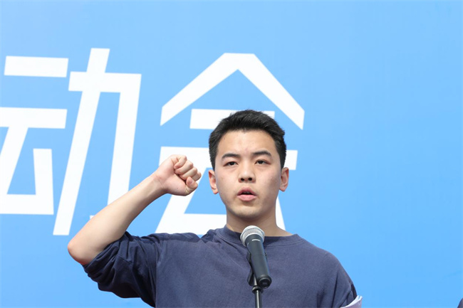 體育教學(xué)部教師于征征代表裁判員宣誓,表示將嚴(yán)格遵守比賽規(guī)則和裁判員紀(jì)律,做到嚴(yán)肅、認(rèn)真、公正、準(zhǔn)確。2022級(jí)水利工程系土檢2班學(xué)生趙康寧代表運(yùn)動(dòng)員宣誓,表示將堅(jiān)持“友誼第一,比賽第二”的體育風(fēng)尚,賽出水平,賽出風(fēng)格。