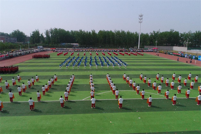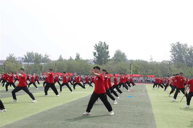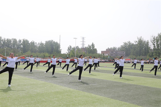 42名教職工化身運(yùn)動(dòng)健將,表演了第九套廣播體操,展示了力量與美感,體現(xiàn)了學(xué)校教職工拼搏進(jìn)取、團(tuán)結(jié)一致的向上精神。由484名學(xué)生帶來(lái)的“體育+團(tuán)學(xué)教育活動(dòng)展示”原創(chuàng)節(jié)目,融合健美操、武術(shù)等表演形式,從“開(kāi)創(chuàng)未來(lái)”、“青春活力”、“精忠報(bào)國(guó)”三個(gè)篇章,展現(xiàn)了水環(huán)學(xué)子們“報(bào)效祖國(guó),一生所向”的家國(guó)情懷和“齊心協(xié)力,砥礪奮進(jìn)”的團(tuán)結(jié)精神,成為開(kāi)幕式的一大亮點(diǎn)。