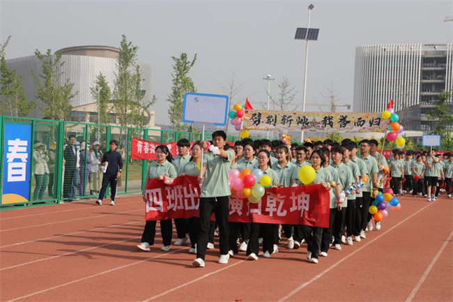 李廣慧致開(kāi)幕辭,對(duì)運(yùn)動(dòng)會(huì)的召開(kāi)表示熱烈的祝賀,向運(yùn)動(dòng)會(huì)所有工作人員、全體運(yùn)動(dòng)員和全體教職工表示衷心的感謝和誠(chéng)摯的問(wèn)候。他指出,學(xué)校全面貫徹黨的教育方針,落實(shí)立德樹(shù)人根本任務(wù),堅(jiān)持“德智體美勞”五育并舉,把師生健康放在首要位置。本次春季運(yùn)動(dòng)會(huì)是對(duì)全校師生精神面貌、體育競(jìng)技水平和班級(jí)文化的一次全面檢閱,是同學(xué)們實(shí)現(xiàn)自主發(fā)展、展示個(gè)性特長(zhǎng)的一個(gè)平臺(tái),希望全體運(yùn)動(dòng)員充分發(fā)揚(yáng)體育精神,頑強(qiáng)拼搏,勇于進(jìn)取,賽出水平,服從裁判,尊重對(duì)手,賽出風(fēng)格;觀賽學(xué)生要積極發(fā)揚(yáng)奉獻(xiàn)精神,樹(shù)立服務(wù)意識(shí),為班級(jí)運(yùn)動(dòng)員做好后勤保障,為比賽加油鼓勁;全體裁判員和工作人員要公正評(píng)判,優(yōu)質(zhì)高效完成各項(xiàng)工作,把此次運(yùn)動(dòng)會(huì)辦成緊張有序、團(tuán)結(jié)高效的盛會(huì)。希望全校上下以此次運(yùn)動(dòng)會(huì)為契機(jī),充分弘揚(yáng)中華體育精神,在運(yùn)動(dòng)中感受快樂(lè)、在鍛煉中收獲健康、在不斷突破自我中歷練堅(jiān)強(qiáng)的意志力,時(shí)刻以?shī)^斗者的姿態(tài),主動(dòng)樹(shù)一流、積極爭(zhēng)一流、努力創(chuàng)一流,為高標(biāo)準(zhǔn)建設(shè)現(xiàn)代化水環(huán)學(xué)院貢獻(xiàn)一份力量。
