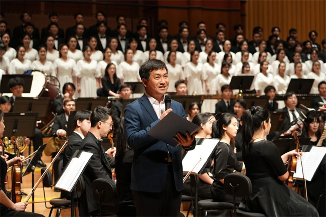音樂會開場,河南機(jī)電職業(yè)學(xué)院黨委宣傳統(tǒng)戰(zhàn)部部長、音樂學(xué)院黨總支書記李想在致辭中介紹,知行交響樂團(tuán)自2021年成立以來,把舞臺當(dāng)教室、把教室當(dāng)舞臺,以演出推動教學(xué),在校內(nèi)外舉辦近百場演出,受眾超過五萬人,極大豐富了師生校園文化生活。李想對關(guān)心支持河南機(jī)電職業(yè)學(xué)院音樂學(xué)院的各級領(lǐng)導(dǎo)和社會各界人士表示衷心感謝和崇高的敬意。