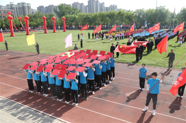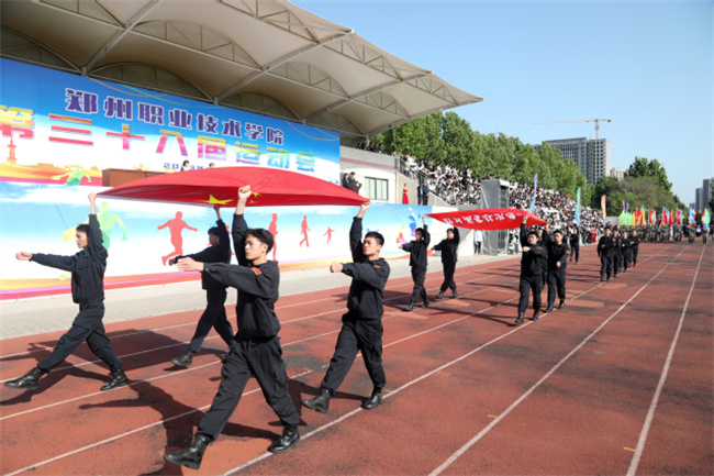 黨委書記苗晉琦宣布:鄭州職業(yè)技術學院“華光”體育活動·第38屆運動會開幕!