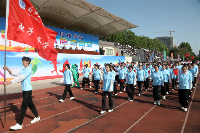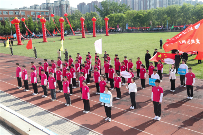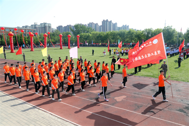 彩旗招展,呼號聲聲。伴隨著激昂奮進的《運動員進行曲》,國旗、校旗護旗隊邁著鏗鏘有力的步伐率先入場,教職工方隊和各二級學院運動員方隊緊隨其后,他們英姿颯爽、整齊劃一,神采飛揚、意氣風發(fā),彰顯著該校師生蓬勃向上的精神風貌。