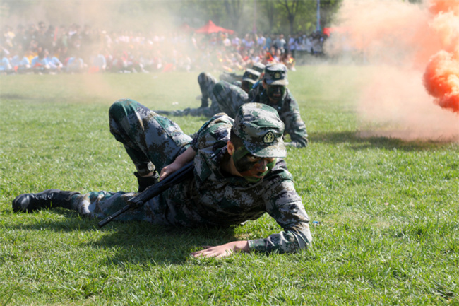 在陣陣歡呼聲中,精彩的節(jié)目表演登場。由王詩鈺老師指導的團體操《活力青春》,熱情洋溢、動感十足;由錢亞輝老師指導的軍事訓練《擒拿拳》和《戰(zhàn)術表演》,斗志昂揚、氣勢如虹;由馮世杰老師指導的體育舞蹈《愛的華爾茲》,旋律優(yōu)美、舞步輕盈......矯健的身姿繪出了鄭職青年的精彩模樣,迷彩與綠茵場的碰撞詮釋著鮮風怒馬少年時。這是一場盛大的現(xiàn)場表演,亦是該校體育教學成果的完美呈現(xiàn)。