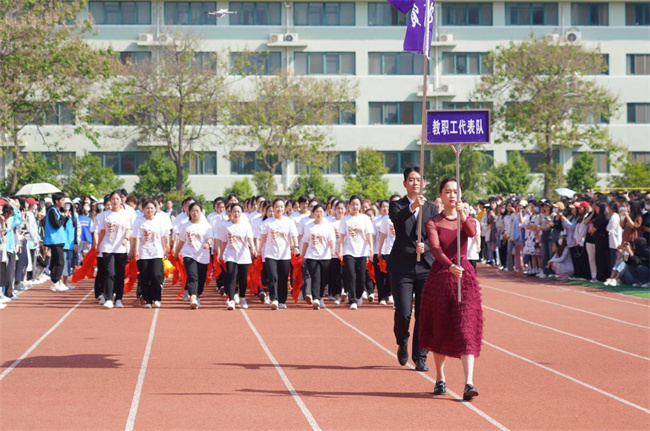 伴隨著雄壯激昂的《運動員進行曲》,在國旗護衛(wèi)隊的引領下,裁判員、教職工代表隊、各學院方陣氣宇軒昂,容光煥發(fā),踏著整齊劃一的步伐,向主席臺領導和現(xiàn)場觀眾展示昂揚向上的精神風貌。