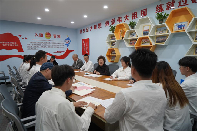 座談會前,周保平一行首先前往校團委和各校級學(xué)生組織辦公室看望并慰問團學(xué)干部,認(rèn)真聽取了團學(xué)干部的工作情況匯報,并結(jié)合自身經(jīng)歷進行深入交流分享。周保平對學(xué)校共青團工作給予充分肯定,認(rèn)為共青團在青年學(xué)生中發(fā)揮了積極影響,工作成效顯著。她強調(diào),共青團工作要體現(xiàn)青年學(xué)生朝氣蓬勃、絢爛多彩的青春特點,要在活動內(nèi)容、活動場所和活動形式上體現(xiàn)共青團引領(lǐng)青年、帶動青年的特點,增強對青年的吸引力,鑄就青年成才夢。她勉勵大家鼓足干勁,再接再厲,推動共青團工作再上新臺階。周保平還向團委青年教師送上節(jié)日的祝福。