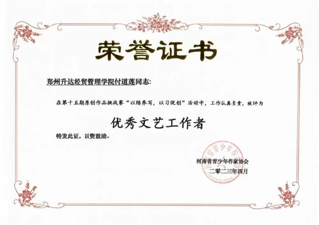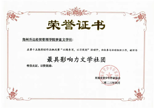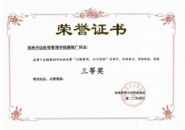 鄭州升達經(jīng)貿(mào)管理學院夢盈文學社在河南省大學生原創(chuàng)作品挑戰(zhàn)賽中喜獲佳績