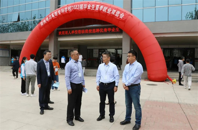 鄭州電力高等?茖W(xué)校黨委書記楊義波、副校長(zhǎng)黃鵬等蒞臨雙選會(huì)現(xiàn)場(chǎng)調(diào)研指導(dǎo)。在雙選會(huì)現(xiàn)場(chǎng),楊義波一行與用人單位深入交流,詳細(xì)了解行業(yè)最新發(fā)展動(dòng)態(tài)、企業(yè)崗位招聘需求、工作待遇和發(fā)展前景,詢問聽取用人單位對(duì)學(xué)校人才培養(yǎng)、專業(yè)建設(shè)、實(shí)習(xí)實(shí)訓(xùn)、就業(yè)工作的意見建議,溝通達(dá)成進(jìn)一步加強(qiáng)校企合作、深化產(chǎn)教融合、助力企業(yè)發(fā)展、促進(jìn)高質(zhì)量充分就業(yè)的一致意愿。在就業(yè)指導(dǎo)服務(wù)臺(tái),楊義波看望慰問奮戰(zhàn)在就業(yè)一線的輔導(dǎo)員、班主任等就業(yè)專兼職人員,要求大家用心、用情、用力,全員、全過(guò)程、全方位,一生一策、一人一檔、一對(duì)一指導(dǎo)幫扶,服務(wù)保障畢業(yè)生早就業(yè)、就好業(yè)、啟航新程、逐夢(mèng)未來(lái)。在與畢業(yè)生交談時(shí),楊義波勉勵(lì)畢業(yè)生仰望星空、腳踏實(shí)地、服務(wù)祖國(guó)、建功基層,敢于把未來(lái)個(gè)人職業(yè)發(fā)展定位到職場(chǎng)一線,從基層做起,既接受職場(chǎng)挑戰(zhàn),也通過(guò)自己的努力促進(jìn)行業(yè)企業(yè)的發(fā)展,在平凡的崗位上為技能中國(guó)建設(shè)、社會(huì)主義現(xiàn)代化強(qiáng)國(guó)建設(shè)做出不平凡的業(yè)績(jī)。
