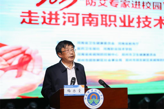梅樂堂在致辭中指出,學(xué)校高度重視公共衛(wèi)生安全和健康教育工作,建立了全面科學(xué)的公共衛(wèi)生安全工作領(lǐng)導(dǎo)制度和工作機(jī)制,開展了形式廣泛的宣傳和教育活動(dòng),提高了防艾宣教工作的覆蓋面與針對(duì)性,有效保護(hù)了學(xué)校師生的身心健康。他號(hào)召青年師生積極學(xué)習(xí)防艾科普知識(shí),增強(qiáng)自我保護(hù)能力,自重自愛、珍愛生命,為建設(shè)健康、和諧、文明社會(huì)做出應(yīng)有的貢獻(xiàn)。
