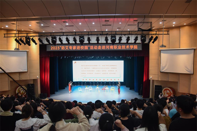 專家訪談互動(dòng)環(huán)節(jié),河南省疾病預(yù)防控制中心性病艾滋病防治研究所馬彥民、鄭州市疾病預(yù)防控制中心性病艾滋病預(yù)防控制所所長劉征、鄭州市鄭東新區(qū)疾控中心主任楊松琴三位專家通過面對(duì)面訪談和有獎(jiǎng)問答的形式詳細(xì)講解了目前大學(xué)生群體中艾滋病流行的現(xiàn)狀與趨勢(shì)、艾滋病感染的主要途徑、預(yù)防艾滋病的ABCDE原則、咨詢檢測服務(wù)及艾滋病治療的方法與效果,為學(xué)生上了一堂生動(dòng)的“防艾知識(shí)課”,同學(xué)們踴躍參與,氣氛熱烈。