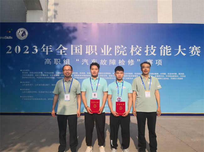 中新河南網(wǎng)5月18日電(王彪) 5月14至15日,由教育部主辦的2023年全國職業(yè)院校技能大賽高職組“汽車故障檢修”賽項在山東交通職業(yè)學院舉行,來自全國31個省市、自治區(qū)和新疆生產(chǎn)建設(shè)兵團的67支代表隊參賽。河南職院汽車與交通學院韓家輝、尹開典兩名同學代表學校參賽,經(jīng)過激烈角逐,最終榮獲“汽車故障檢修”賽項一等獎。羅道寶、王彪兩位教師獲“優(yōu)秀指導教師”稱號。